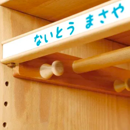 | 差し込み式ネームプレート | 差し込み式のネームプレートなので写真や名前などいろいろ工夫したカードを入れられます。簡単に差し替えができるので、使う子どもが替わっても便利です。 |